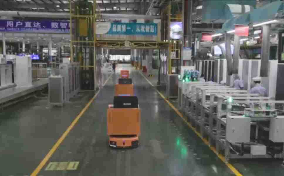 为车载冰箱物流配送打造的智能解决方案,,,,包含产中物流通过潜伏举升AMR搬运至线边,,产后成品物流智能仓储,,流程包含产中物流智能齐套入库,,线边安灯叫料AMR智能配送至线边,,成品入库、、出库,,,,通过无人堆高车机器人,,,,智能仓储管理替代人工作业管理,,,,实现更高存储、、、更高效率、、更具柔性化的解决方案。。。